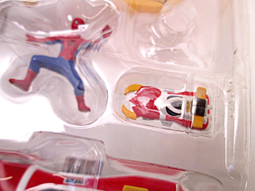 ソフビ以外の付属品も盛り沢山。ミニサイズのスパイダーマンとスパイダーマシンGP-7、ポピニカのGp-7が付属します。