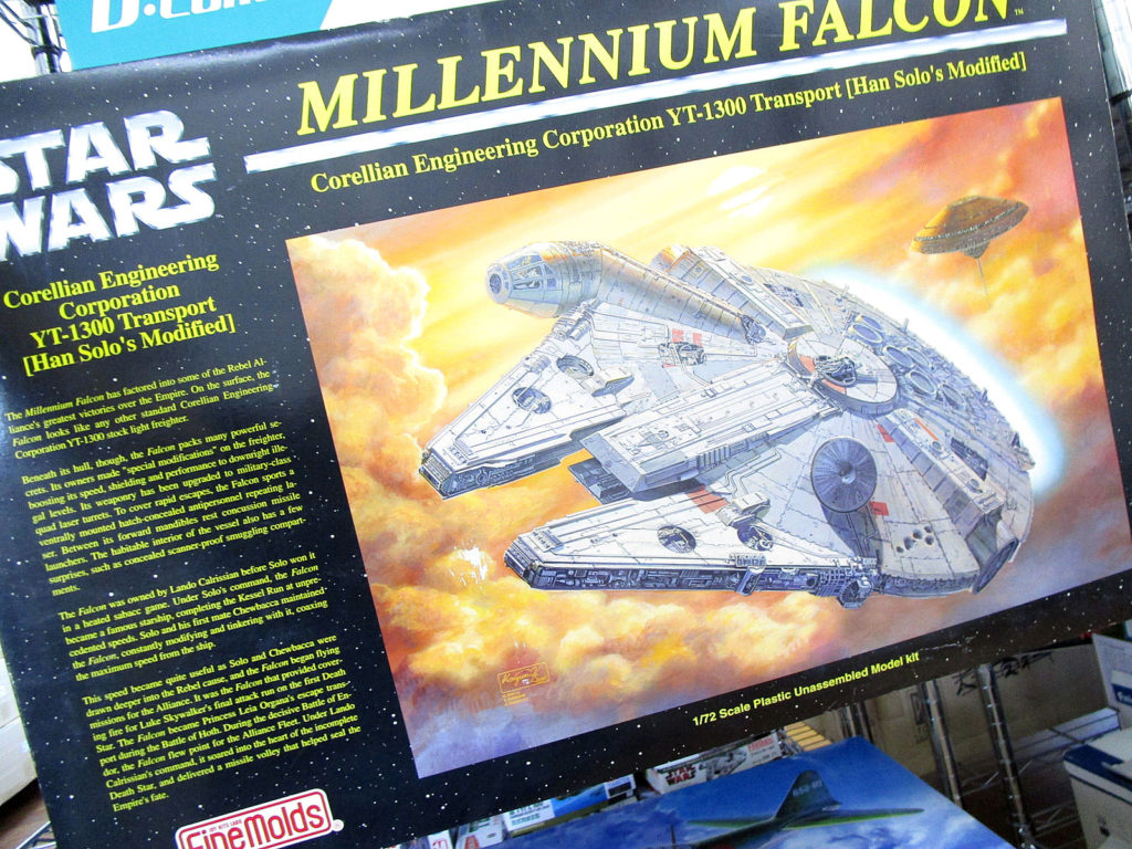 ファインモールド 1/72 ミレニアム・ファルコンや、バンダイ 1/2 BB-8が並びます。