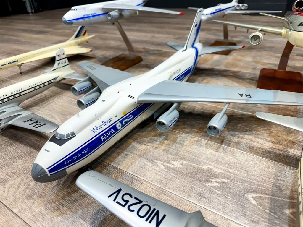 さまざまな航空機が集まる中でも、一際目を引く巨鳥An-124。コレクションの中でも最大級のスケール感で、圧倒的な存在感を放っています。