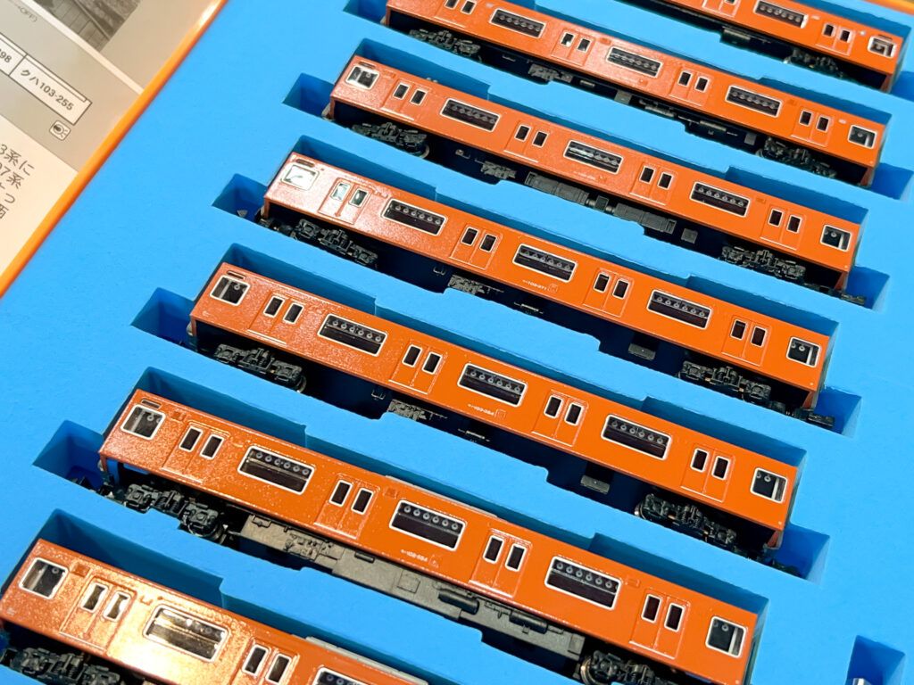 続きまして、こちらの商品は2000年代初頭頃まで東海道本線を走っていた、103系西日本更新車 東海道線スカイブルー7両セットです。
