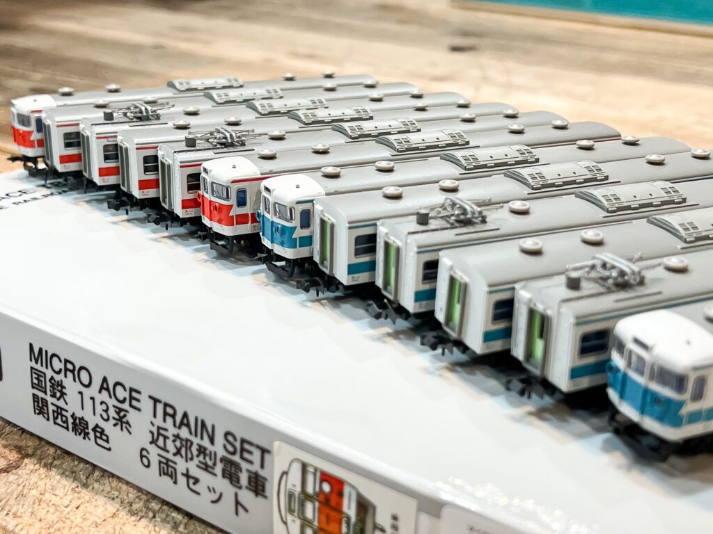 こちらの商品は近郊型電車の代表格とも言える113系です。阪和色はブルーライナー色とも言われ、白色ボディーにブルーの帯がよく映えますね。