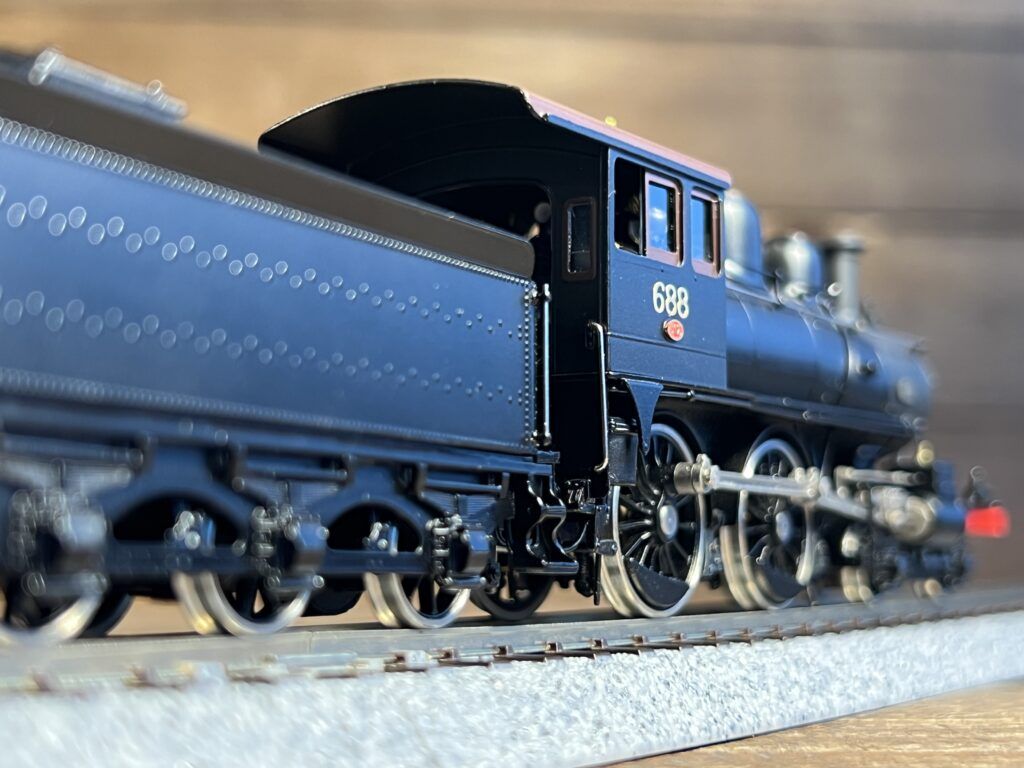 美しく塗装されたボディーに加え、足回りの細部にまで丁寧に色付けが施されており、存在感がより一層際立つ一両です。