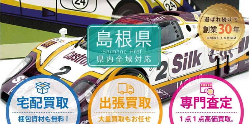 松江市や出雲市、浜田市や益田市をはじめ、島根県内でミニカーの買取なら専門店におまかせ!各種ミニカーやトミカをはじめ、チョロQや建機模型、ケース無しのミニカーもOK。県内全域対応の出張買取と宅配買取で、ボーナスキャンペーンも実施中!